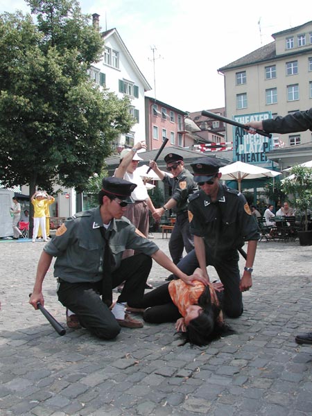瑞士法轮功学员在苏黎世举办反酷刑展,呼吁制止江氏集团恐怖主义暴行 2004-07-31