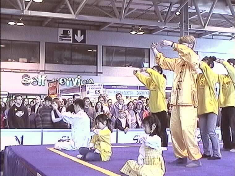 英国法轮功学员在欧洲武术节上演示功法 英国 2001-4