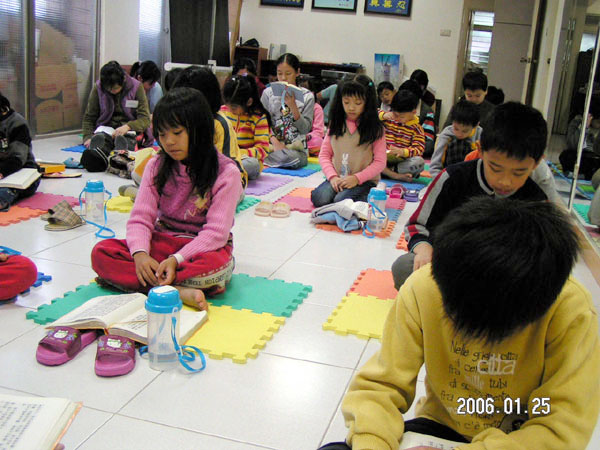 台湾的青年学员在台湾台南成功大学学法交流。2006-2-4--2-6 台北明慧学校法轮大法小弟子一齐学法.