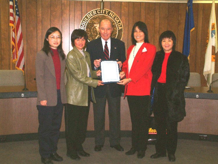 美国内华达州宝德市市长亲自颁奖 祝贺“内华达州法轮大法月”并号召全体市民支持这一值得洪扬的功法 美国 2003-2-22