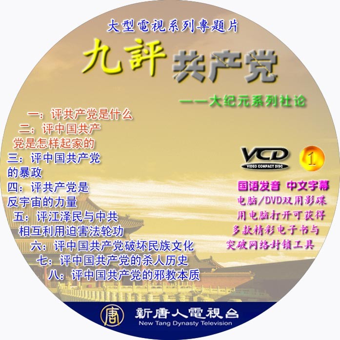 参考资料:《九评共产党》DVD和VCD封面