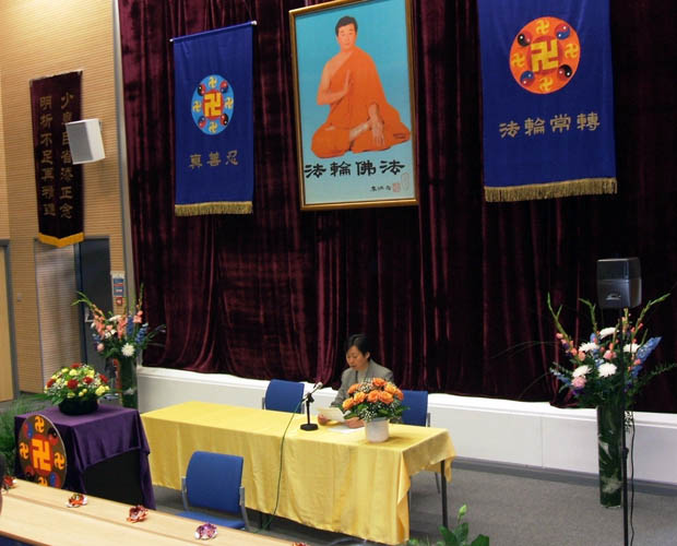 二零零六年法国法会在巴黎隆重召开图为法会会场及学员交流修炼心得2006-11-26