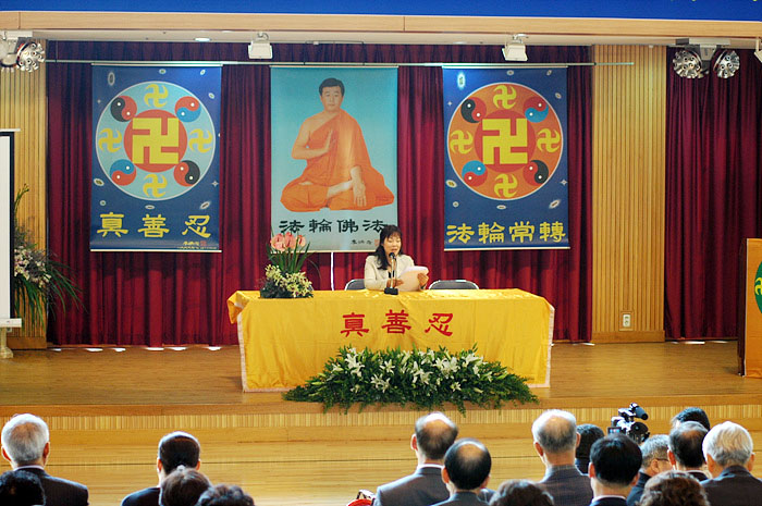 2005年韩国法轮大法法会在釜山召开 图为学员发言谈心得体会