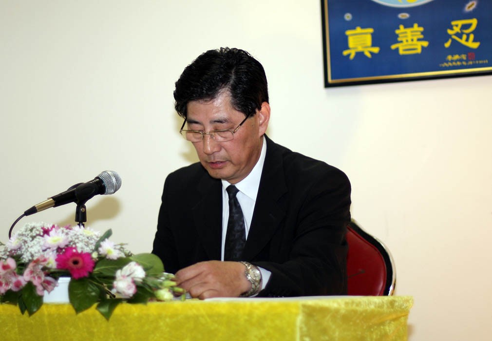 法轮功学员在伦敦举行法轮大法心得交流会,法会场面庄重肃穆