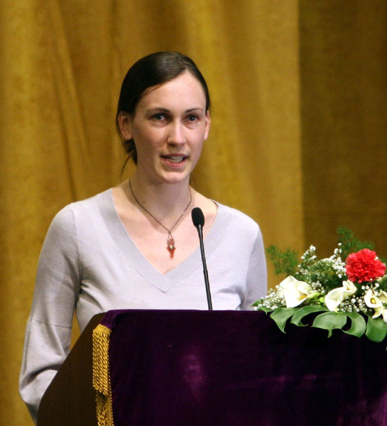 法轮大法修炼心得交流会在夏威夷大学麻诺阿校区举行图为学员在交流会上发言2007-2-26