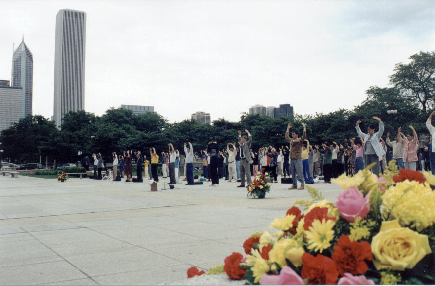 2000年芝加哥法轮大法修炼心得交流会期间的集体炼功