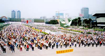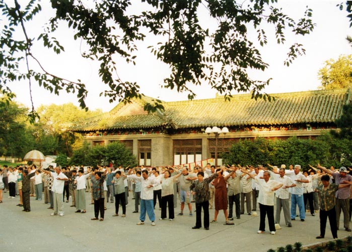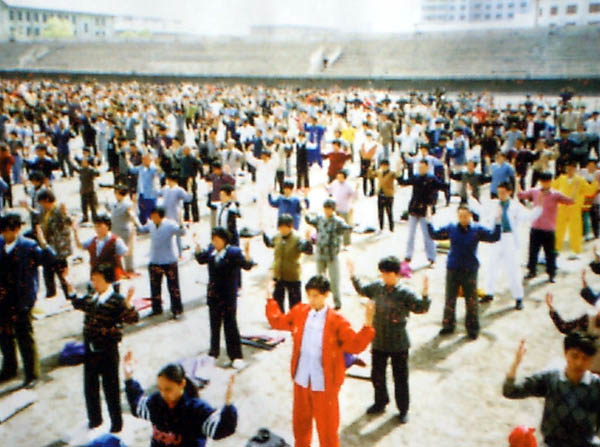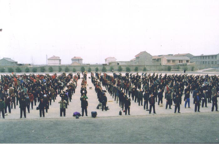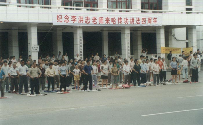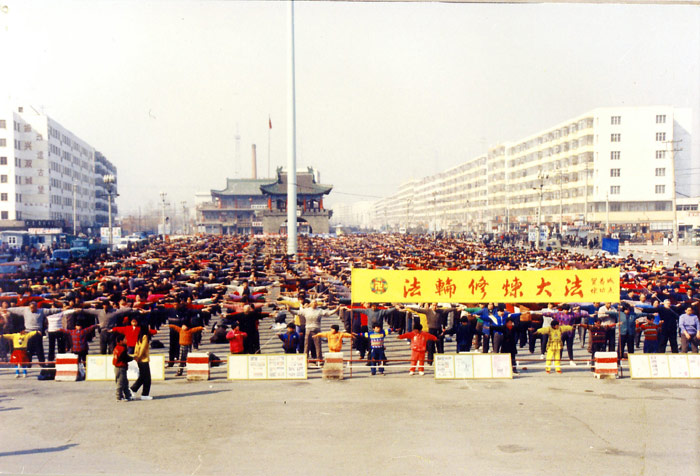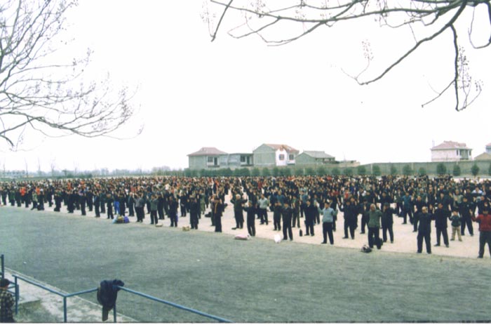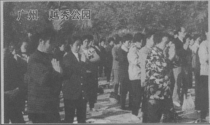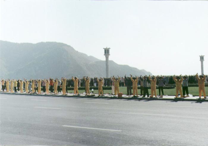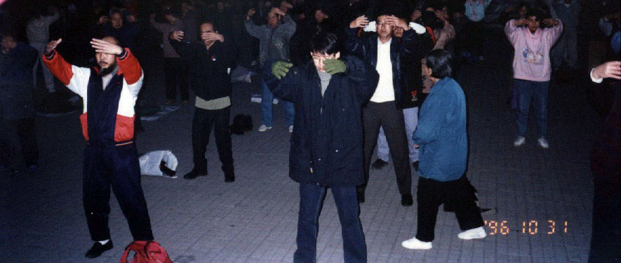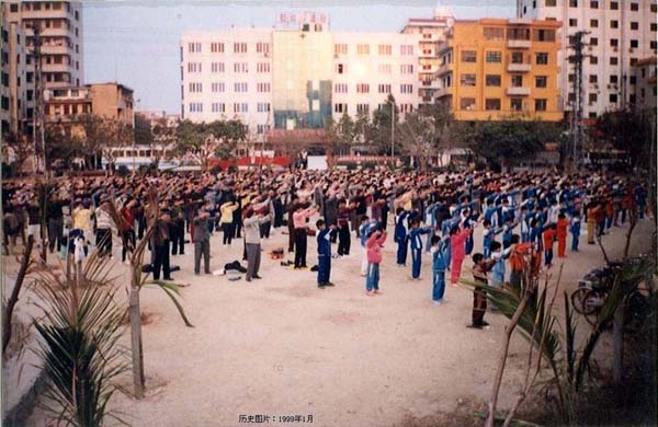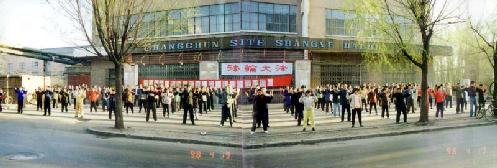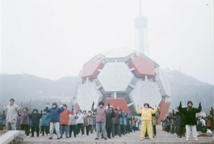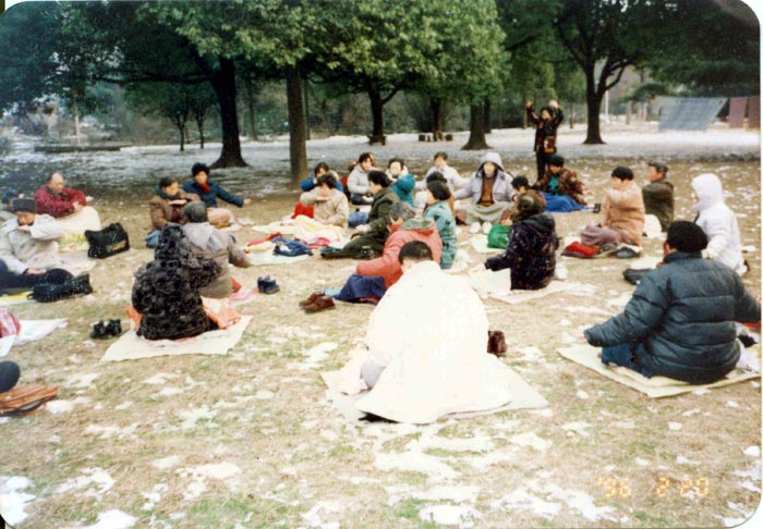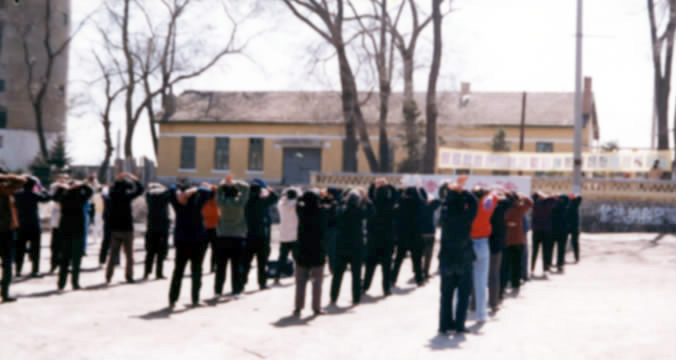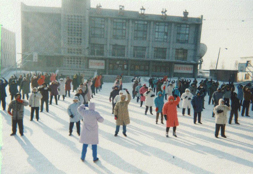 99年1月黑龙江法轮功学员不畏严寒在外面集体炼功