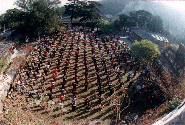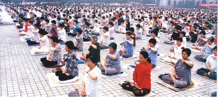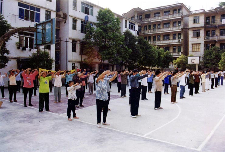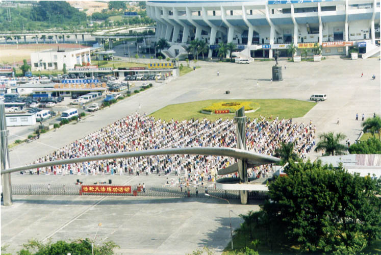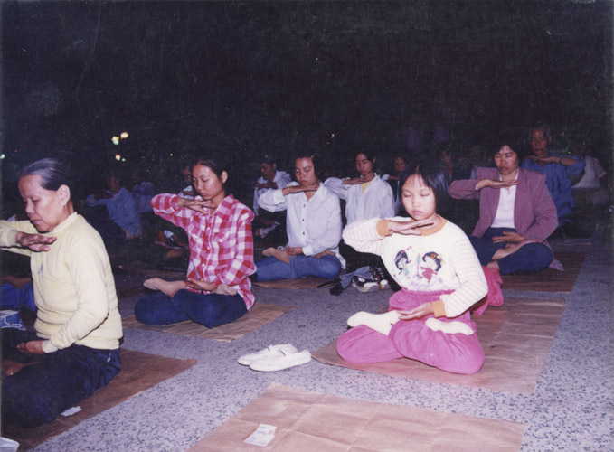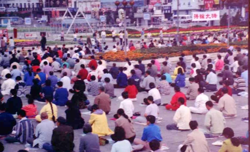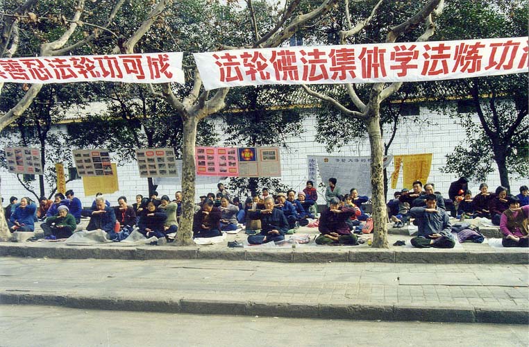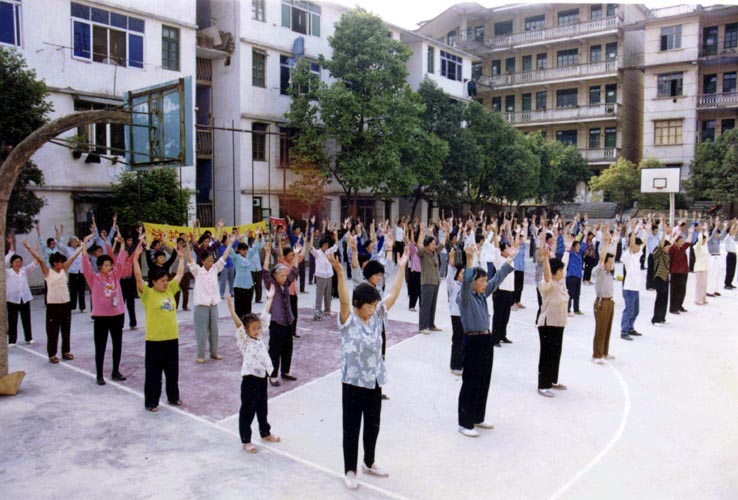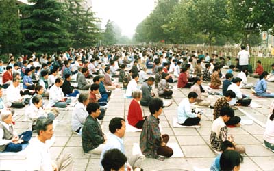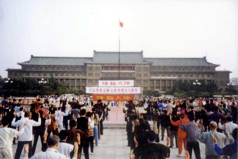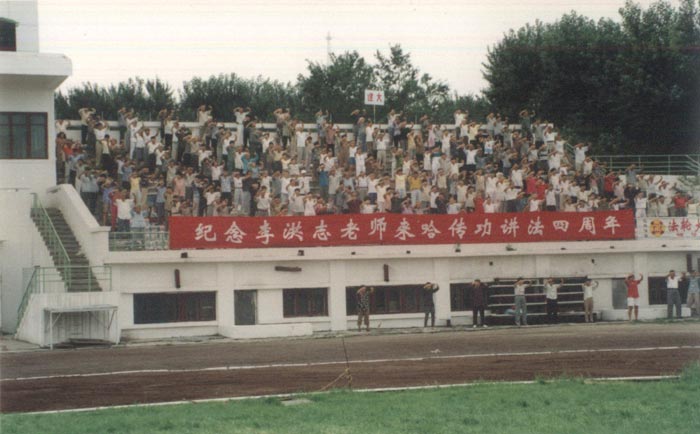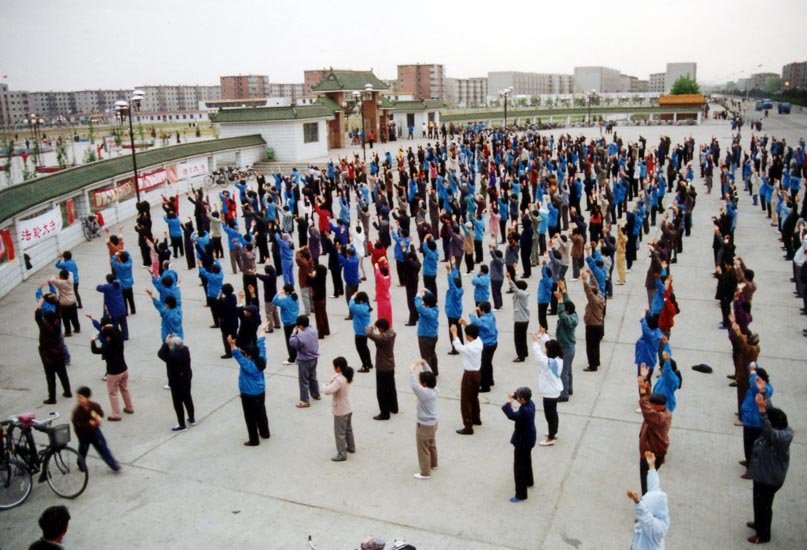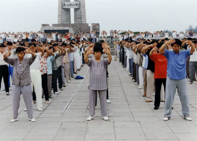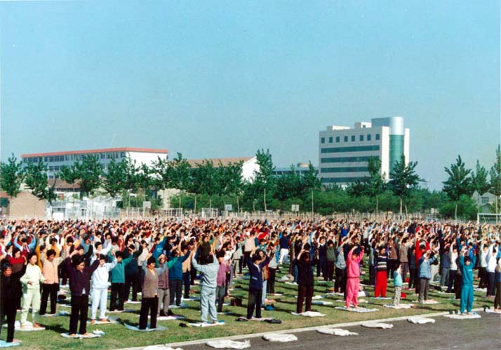 99年1月黑龙江法轮功学员不畏严寒在外面集体炼功
