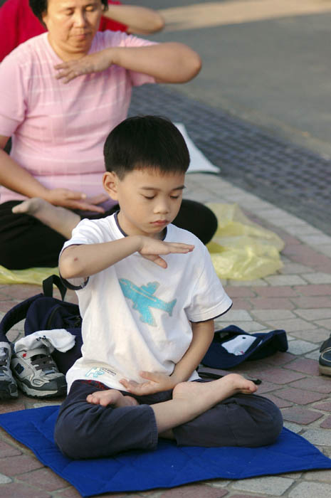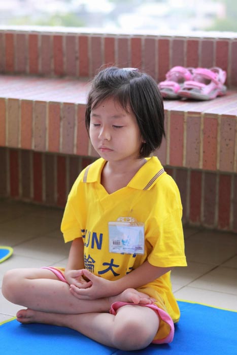 明慧学校的大法小弟子参加嘉义东石高中举办的活动图为纯真专注的炼功神情2008-10-5