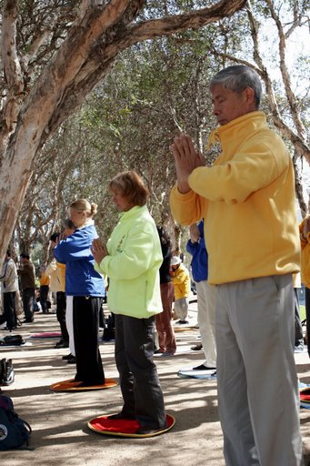 法轮功学员在悉尼APEC召开期间举行一系列活动披露中共的残酷迫害图为集体炼功2007-9-3至9