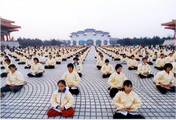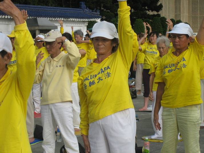 法轮功学员在台北自由广场(前称中正纪念堂)前炼功
