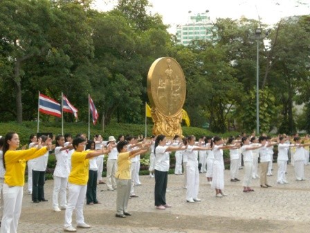 反迫害十二周年,马来西亚雪隆区部份法轮功学员在八打灵再也公园举行集体炼功