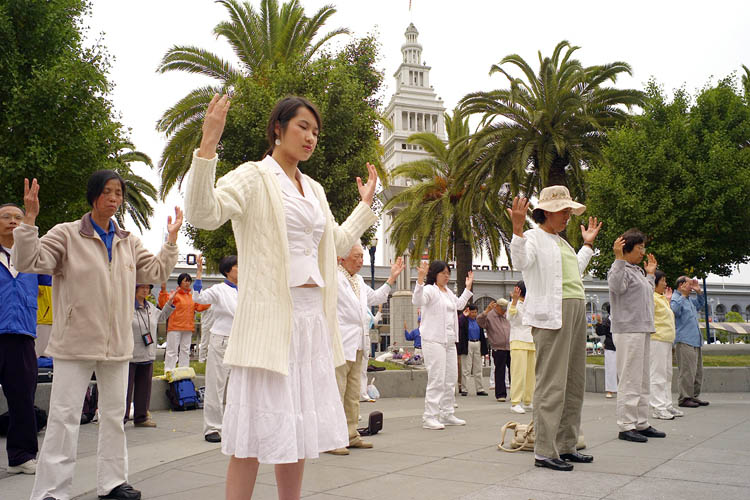 来自世界各地的法轮功学员在旧金山市政厅前集体炼功 2006-10-21