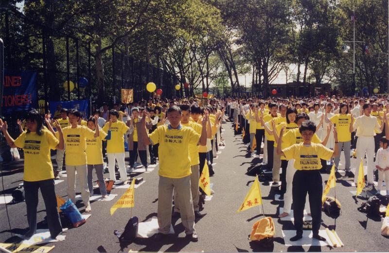 98年5月纽约法轮功学员在林肯中心集体炼功