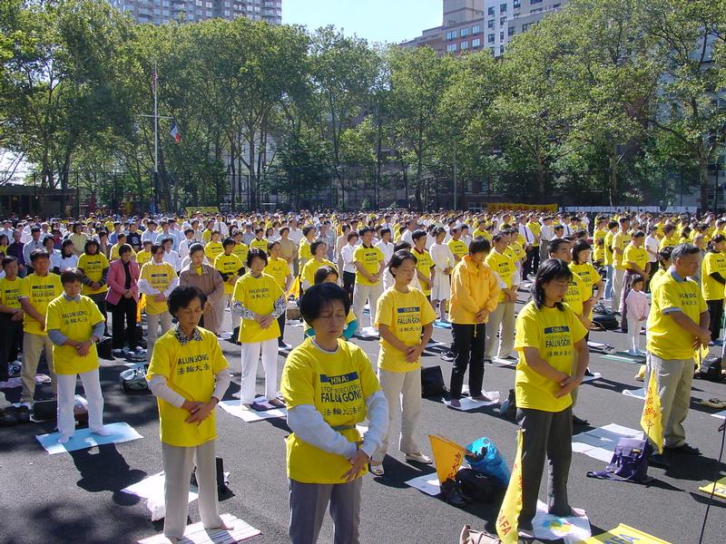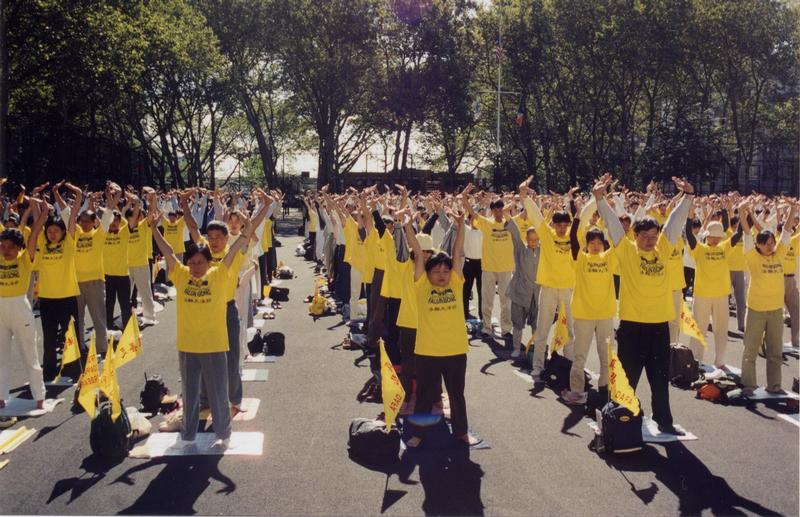 2000年5月纽约法轮功学员在中央公园集体炼功