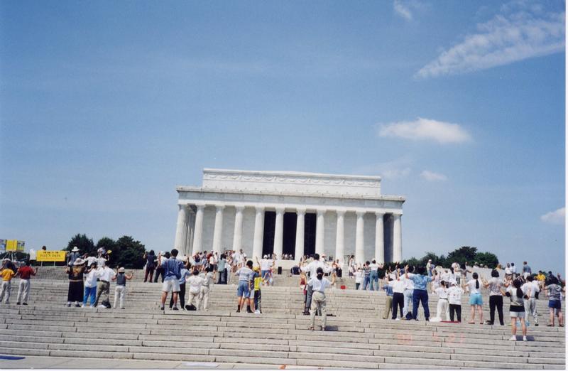 99年7月华盛顿DC国会山庄前集体炼功