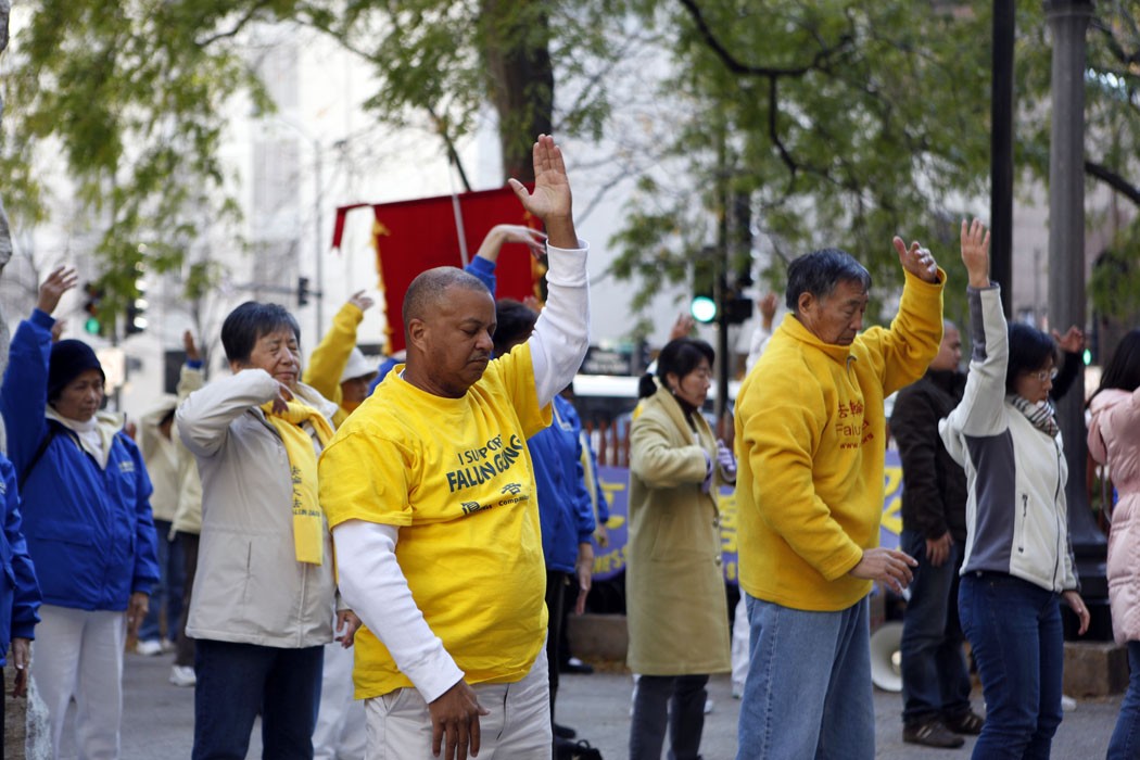 99年芝加哥法会期间法轮功学员在炼功