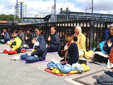 德国大法弟子在大使馆门前发正念