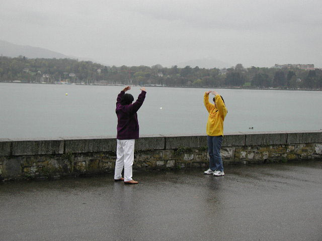 日内瓦人权会期间 学员练功洪法