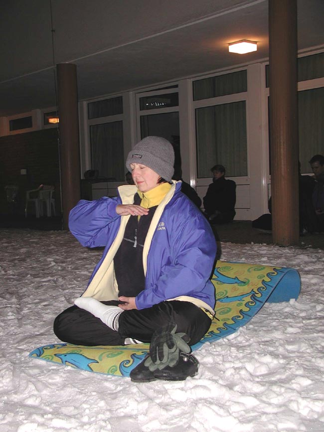 芬兰学员斯妮卡母子和学员一齐炼功.2006-01-12