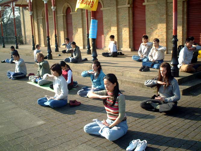英国学员伦敦闹市演示祥和的法轮功功法2006-2-4