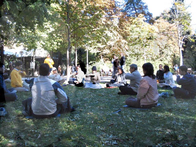 西班牙法轮功学员在马德里市中心广场洪法炼功