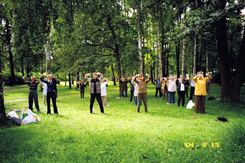俄罗斯学员在圣彼得堡滨海公园集体炼功 2006-6