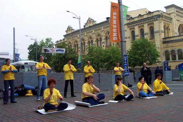 乌克兰法轮功学员正在炼功