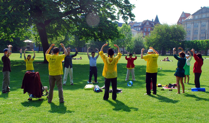 丹麦法轮功学员在哥本哈根的国王公园集体炼功