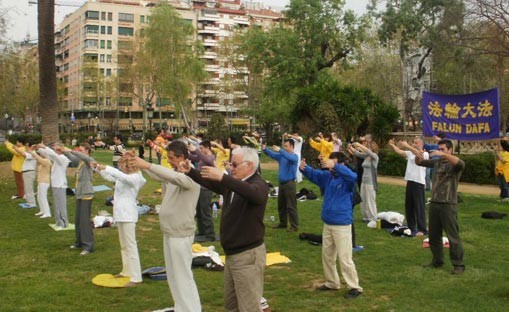 西班牙法轮功学员在castellon大学校园里炼功