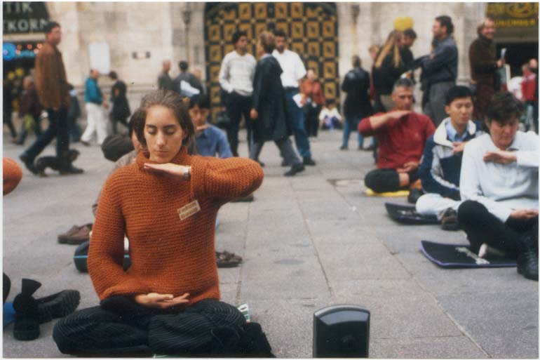 法轮功学员在雅典市中心中央广场上演示功法