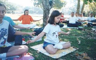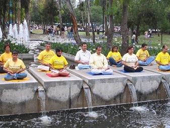 墨西哥法轮功学员在查普特佩克公园举办讲真相活动图为学员集体炼功2007-5-13