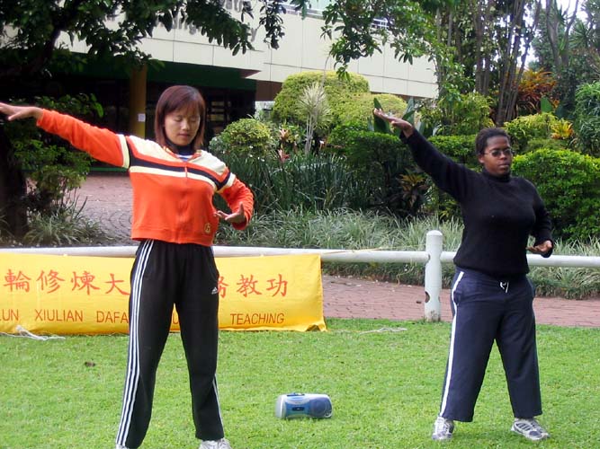 法轮大法弘传非洲图为南非Witswaterand大学炼功