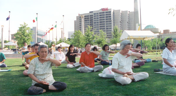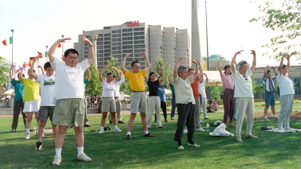 98年9月亚特兰大法轮功学员集体炼功