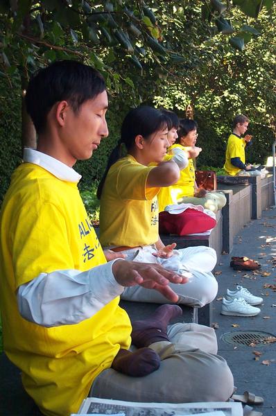 99年10月北卡罗来纳洲法轮功学员在普伦公园炼功