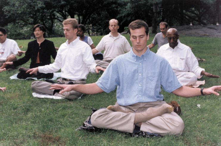 美国的学员在中央公园集体炼功