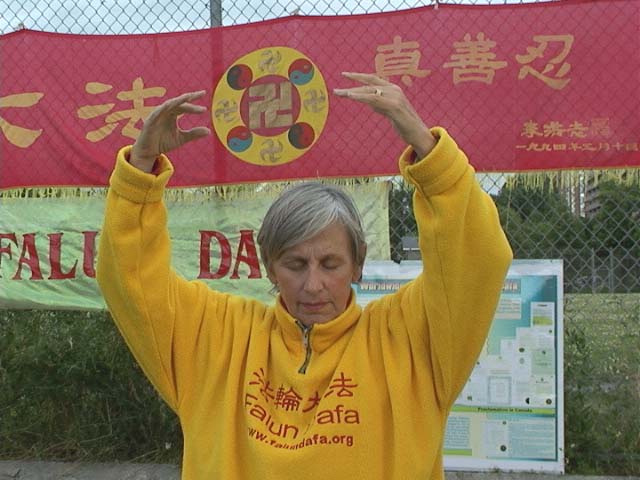 渥太华24小时使馆前持续静坐进入第100天 图为学员在炼功