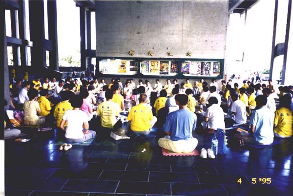 九九年四月二十五日逾千人在长青花园体育馆开法会