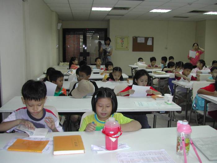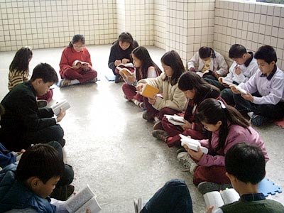 法轮大法洪传台湾中坜—图为明慧学校学生集体学法