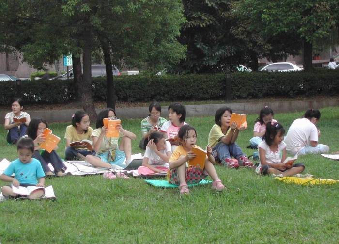 法轮功学员们在一起学习日语版《转法轮》