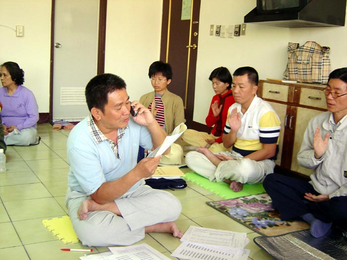 桃竹苗法轮功学员一个月一次的学法交流.