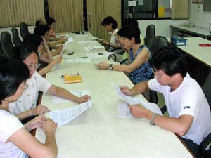 台湾中区法轮功学员在中兴大学举行辅导员集体学法交流,图为交流会场.2006-9-9至10