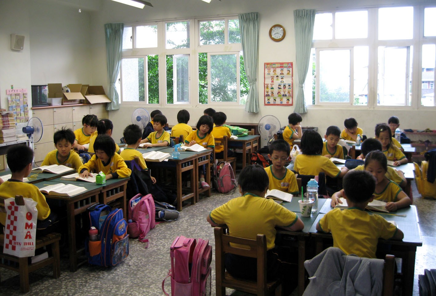 台中太平国小二年级小学生每天早上自习课学习《转法轮》