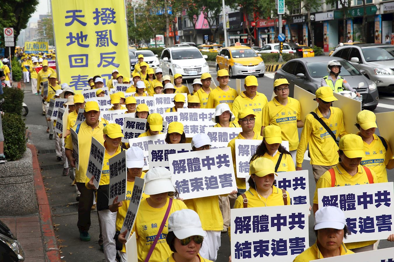 纪念法轮功学员“四·二五”和平上访十九周年,举行盛大的游行。