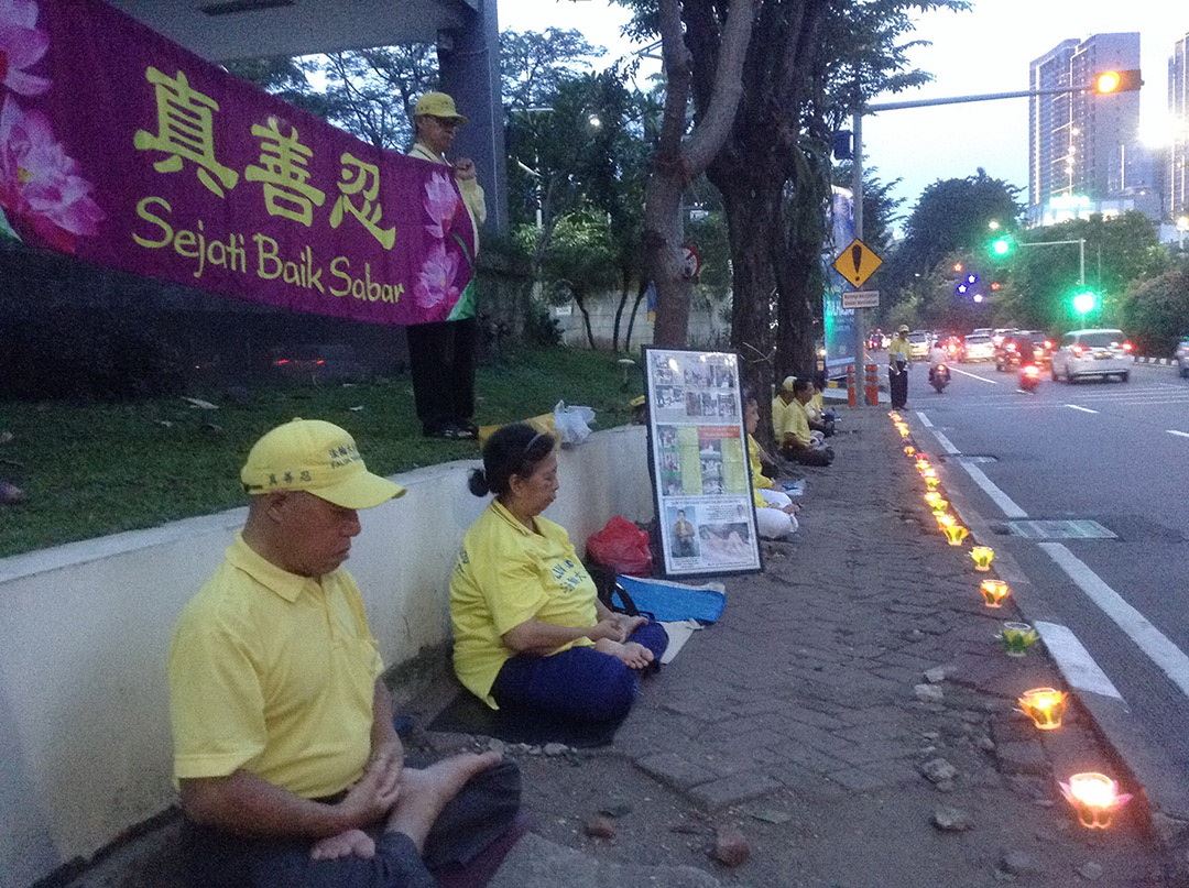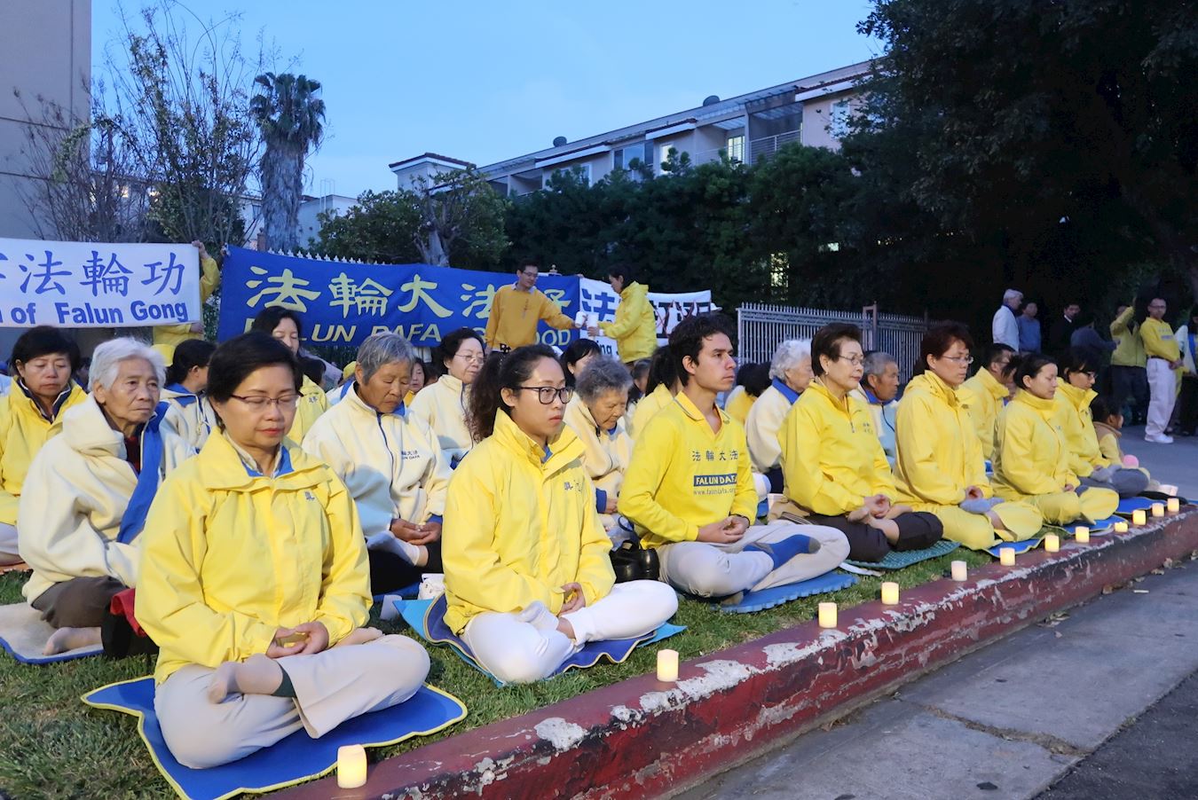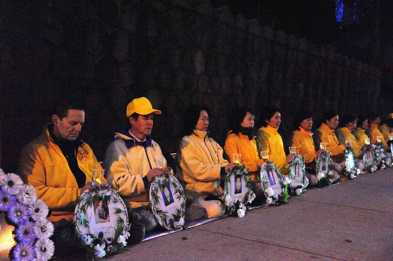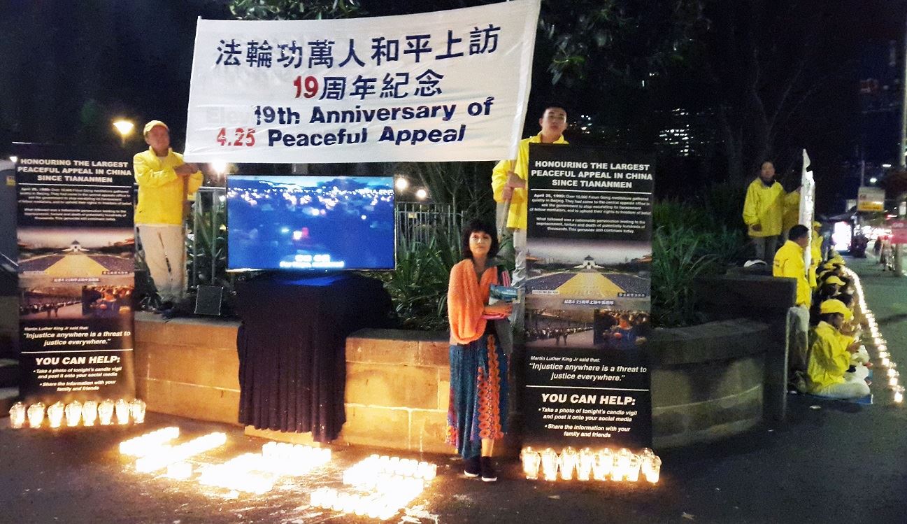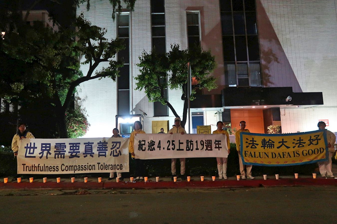 纪念“四·二五”和平上访十九周年,在中领馆前烛光守夜,呼吁制止迫害。