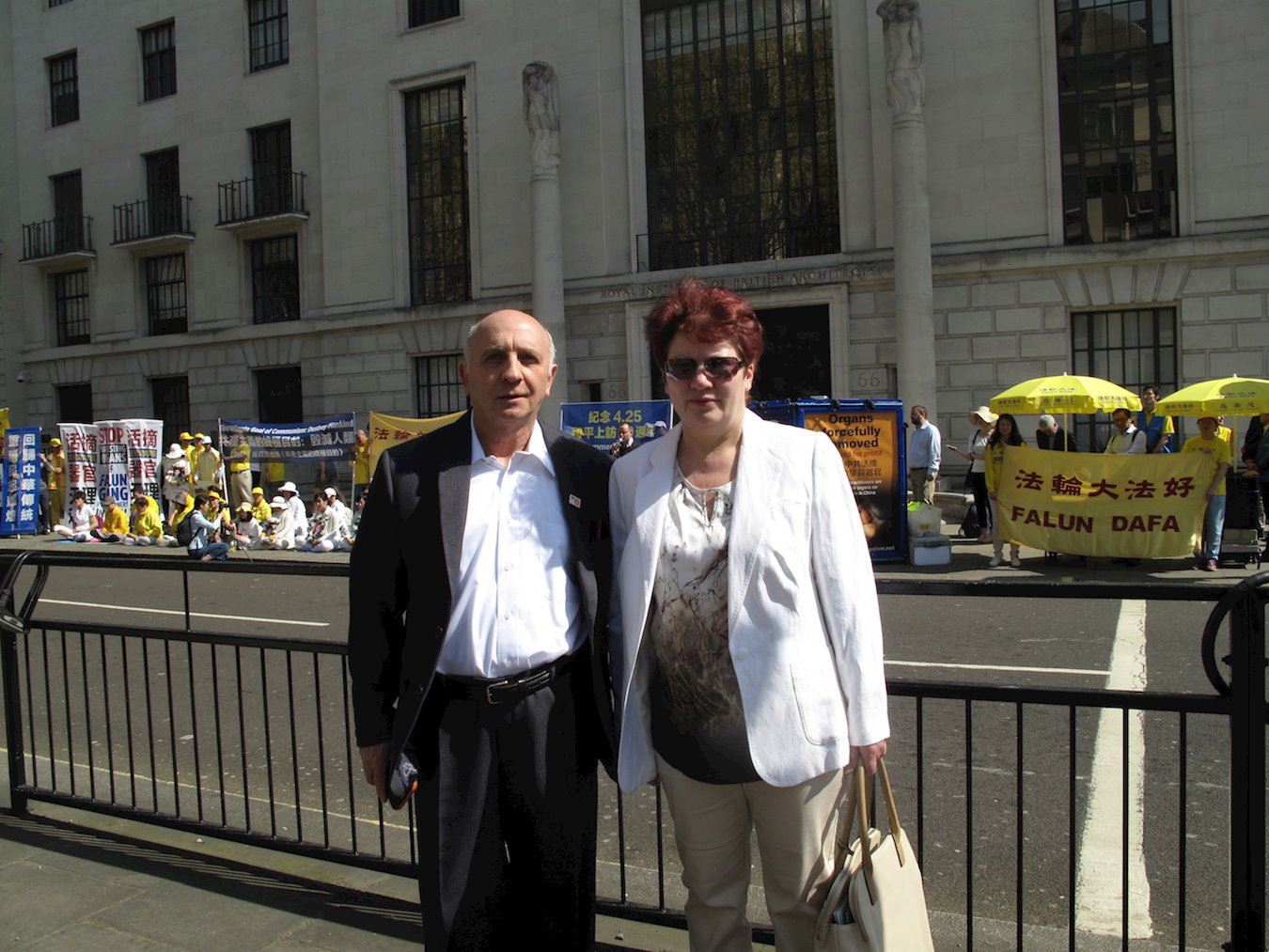 纪念“四•二五”和平上访十九周年,在驻罗马尼亚使馆前抗议中共迫害