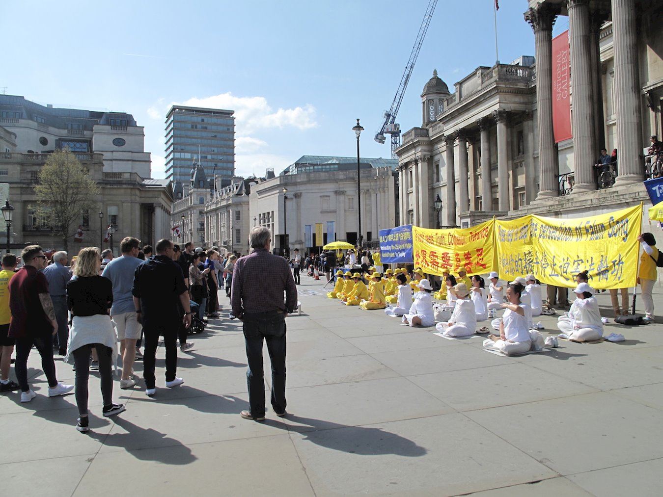 法轮功学员举行集会和集体炼功,纪念“四·二五”和平上访十九周年。