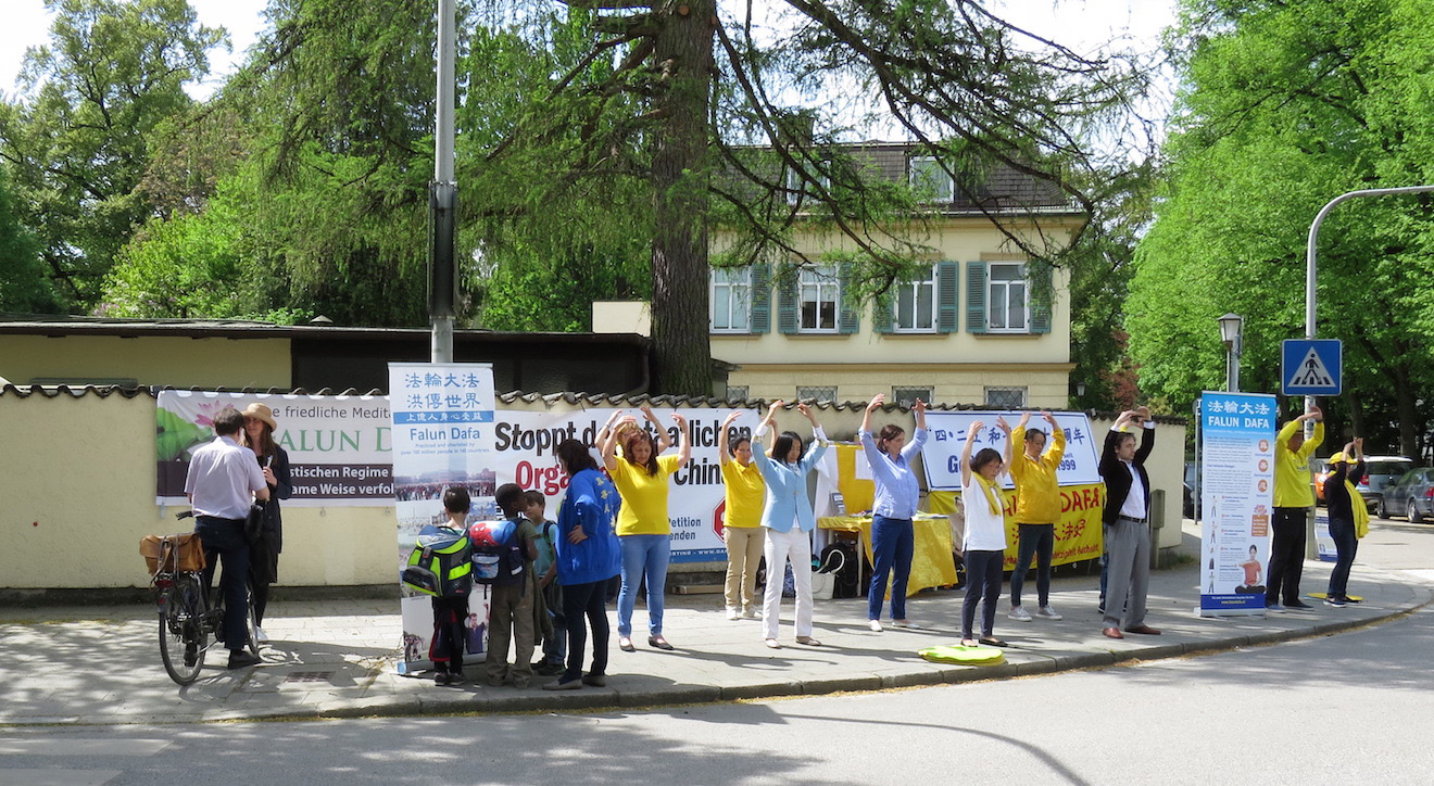 法轮功学员在中领馆外举办集会活动,纪念“四二五”十九周年