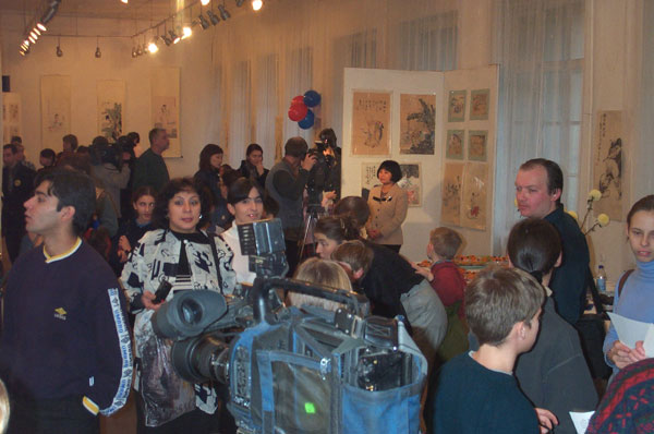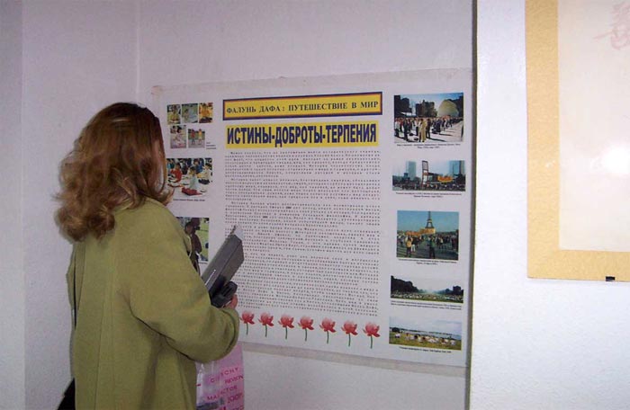 法轮功学员、画家章翠英在高加索山区皮亚季戈尔斯克市举办画展 展示正统艺术 揭露邪恶迫害