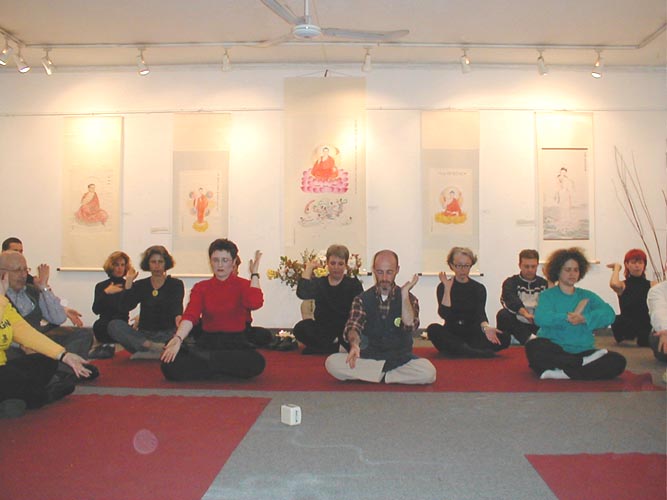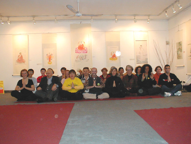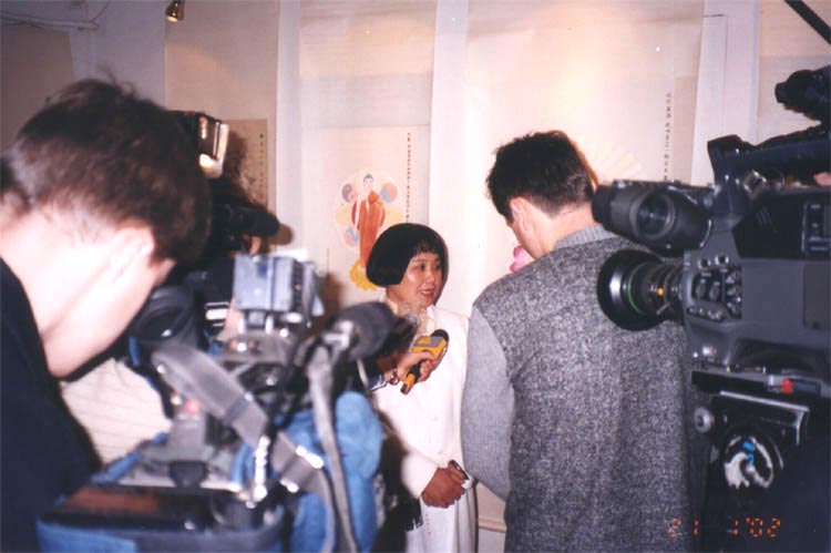 章翠英画展在以色列举办 前来采访的记者也学起了法轮功